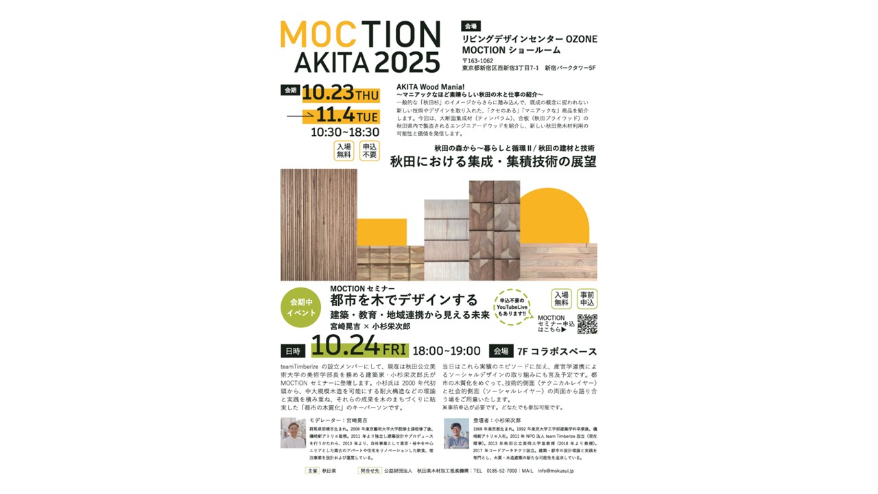 また、会期中の10月24日に開催されたMOCTIONセミナー「都市を木でデザインする」は、こちらから視聴できますので、ご覧ください。