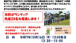 お知らせ 国道7号能代バイパスの木製防護柵塗装イベントのお知らせ【終了しました。】 国道7号能代バイパスの木製防護柵塗装イベントのボランティアを募集しています。 お申し込み、お問い合わせは、秋田県立大学木材高度加工研究所(TEL:0185-52-6900)までお願いします。画像クリックでPDFを閲覧できます。 2025.09.17 お知らせ
