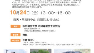 お知らせ 「実践!オンサイト製炭」イベントのお知らせ【終了しました。】 お申し込み、お問い合わせは、秋田県立大学木材高度加工研究所(TEL:0185-52-6900)までお願いします。画像クリックでPDFを閲覧できます。 2025.10.17 お知らせ